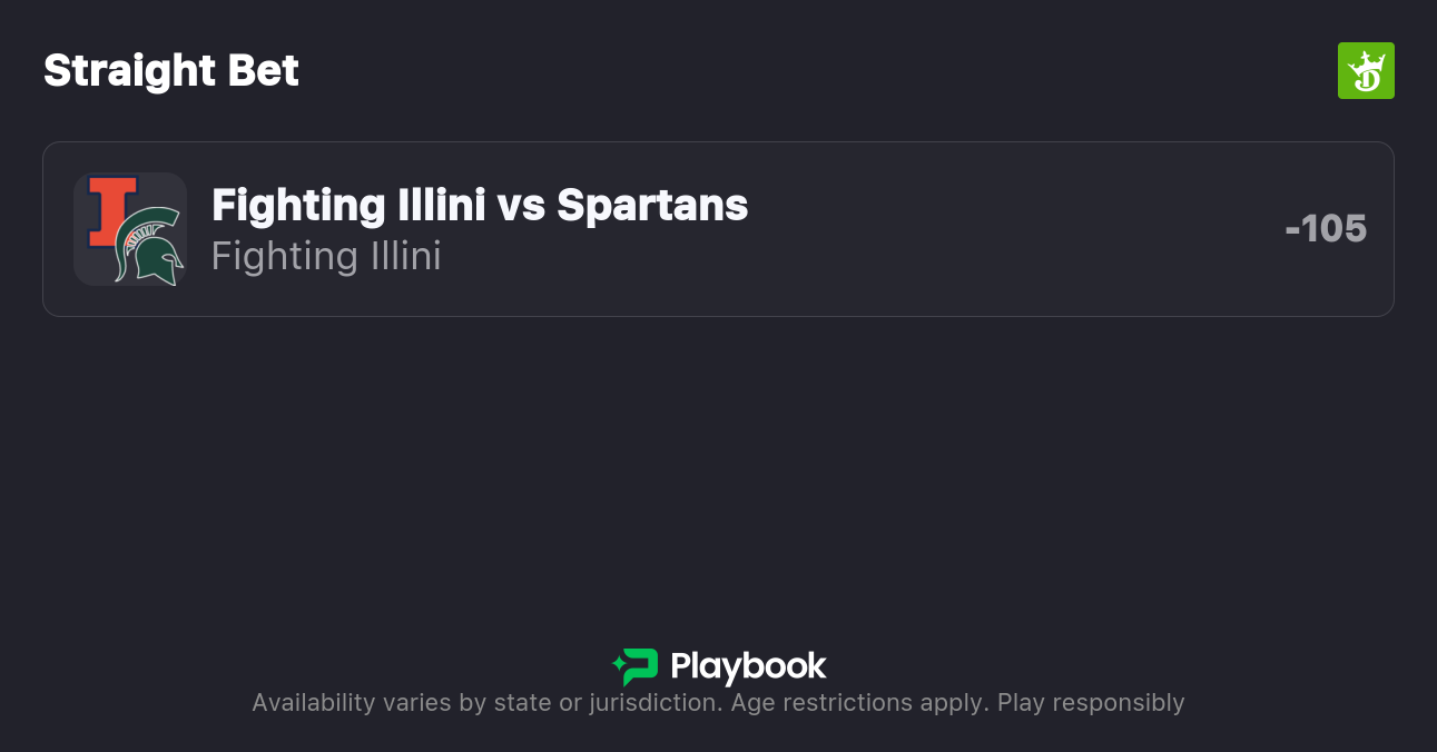 - Illinois vs Michigan State moneyline: Illinois -105, Michigan State -115