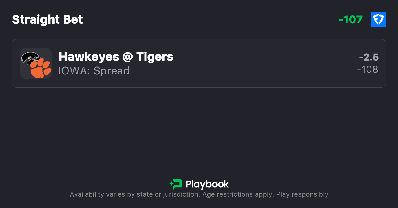 - Iowa vs Clemson spread: Iowa -2.5