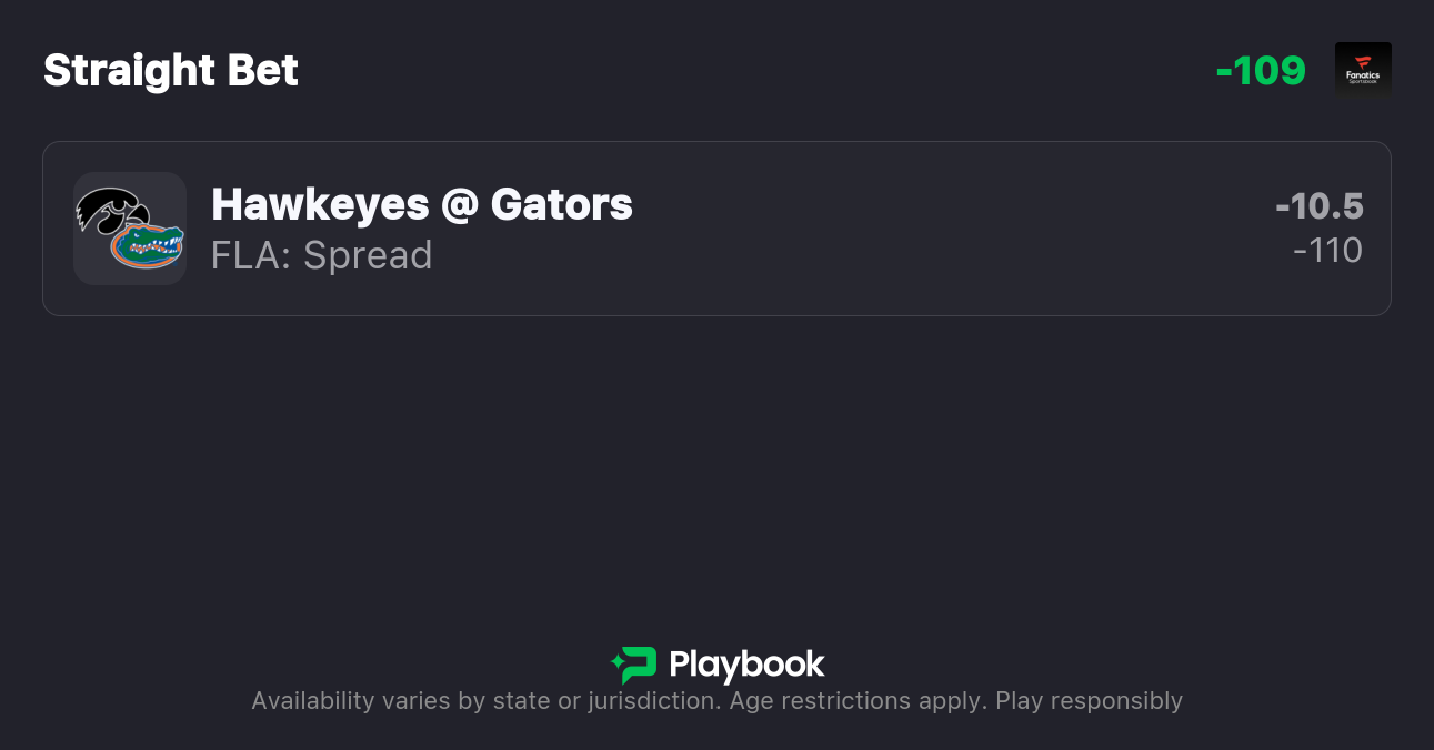 - Iowa vs Florida spread: Florida -10.5