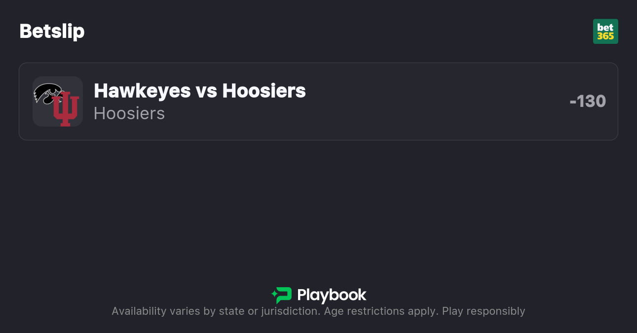 - Iowa vs Indiana moneyline: Iowa +110, Indiana -130