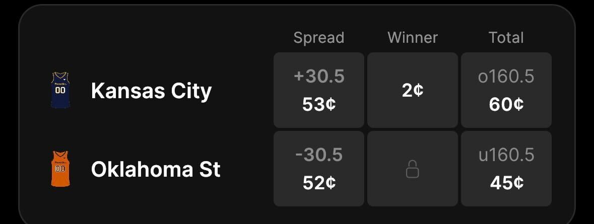 Oklahoma State favored by -30.5 points on the spread and the total is set at 160.5 points on Fanatics Markets.
