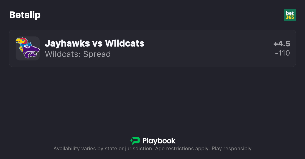 Kansas State is a live dog if Kansas's best player is out, but I think the Wildcats have the goods to compete either way.