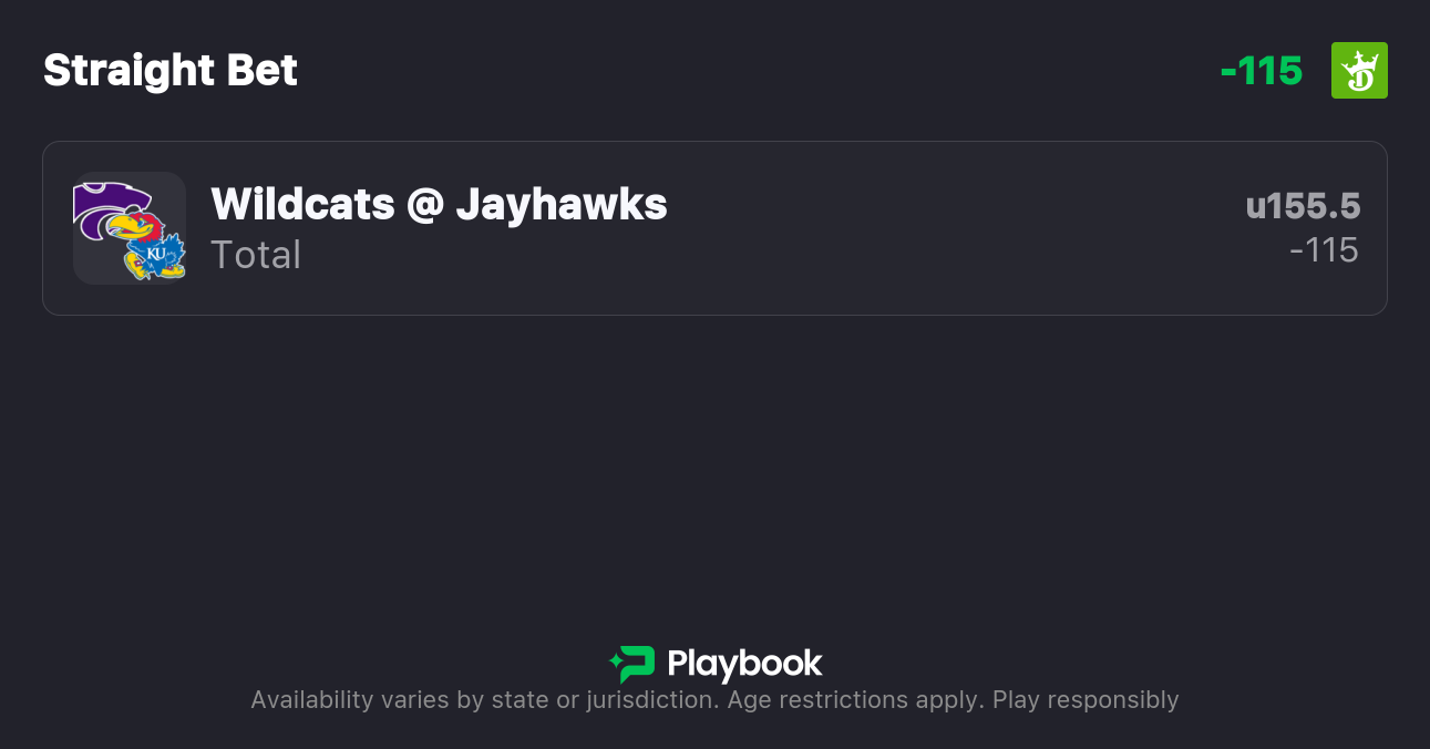 - Kansas State vs Kansas Over/Under: 155.5 points