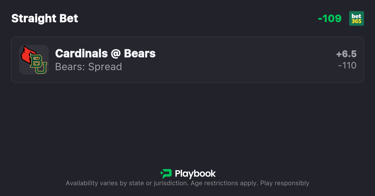 The line is sitting at Louisville -6.5, and I think that's a little too much. Baylor isn't an awful team and is much more talented than the record indicates.
