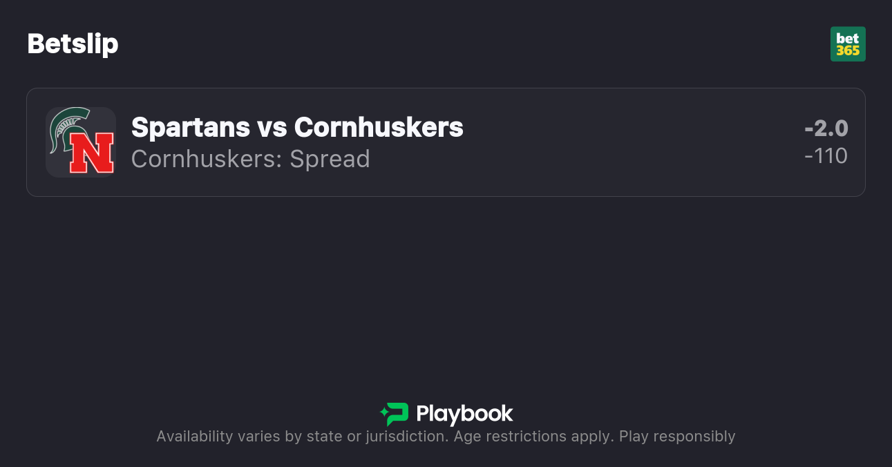 - Michigan State vs Nebraska moneyline: Michigan State +110, Nebraska -130