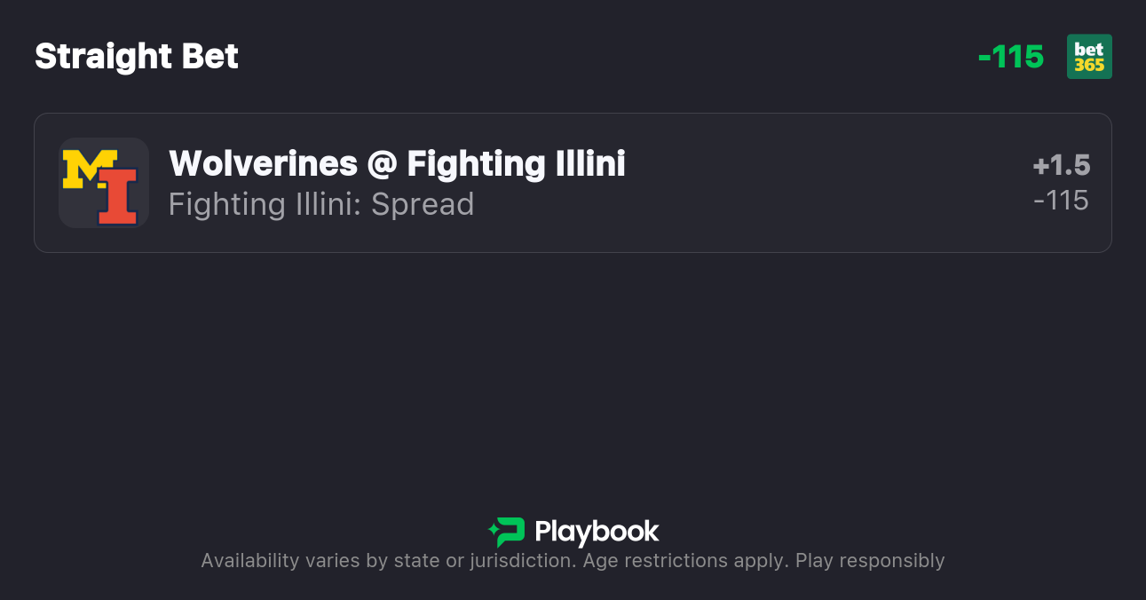 - Michigan vs Illinois spread: MIchigan -1.5