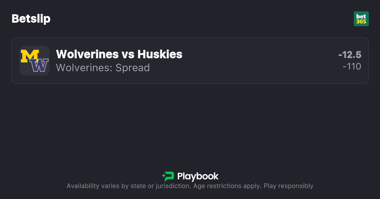 - Michigan vs Washington moneyline: Michigan -1100, Washington +700