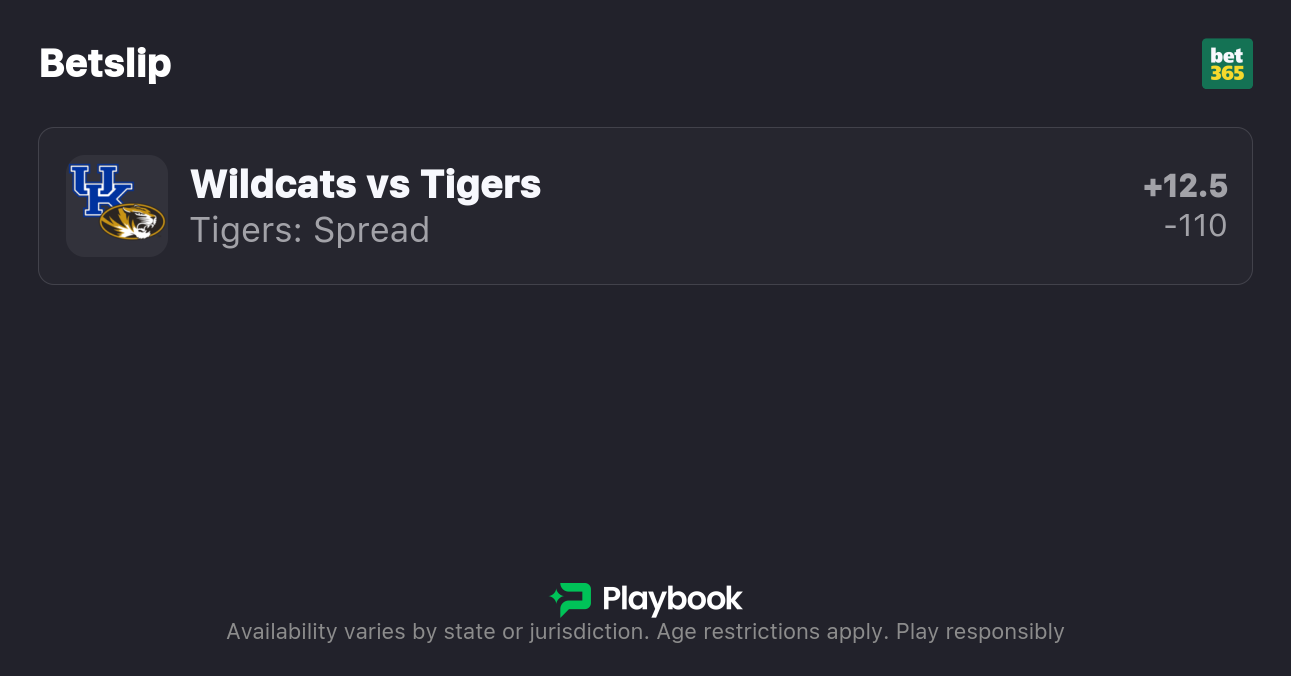 - Missouri vs Kentucky spread: Kentucky -12.5