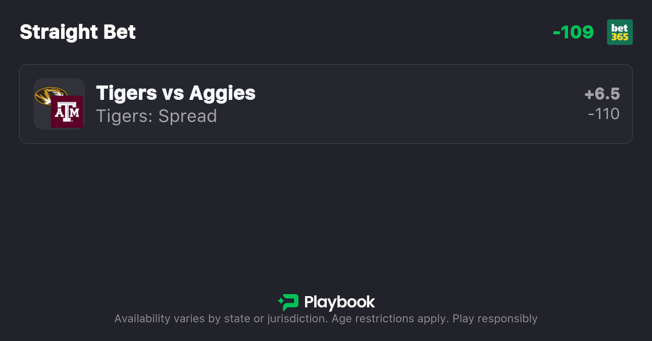 - Missouri vs Texas A&M Spread: Texas A&M -6.5, Missouri +6.5
