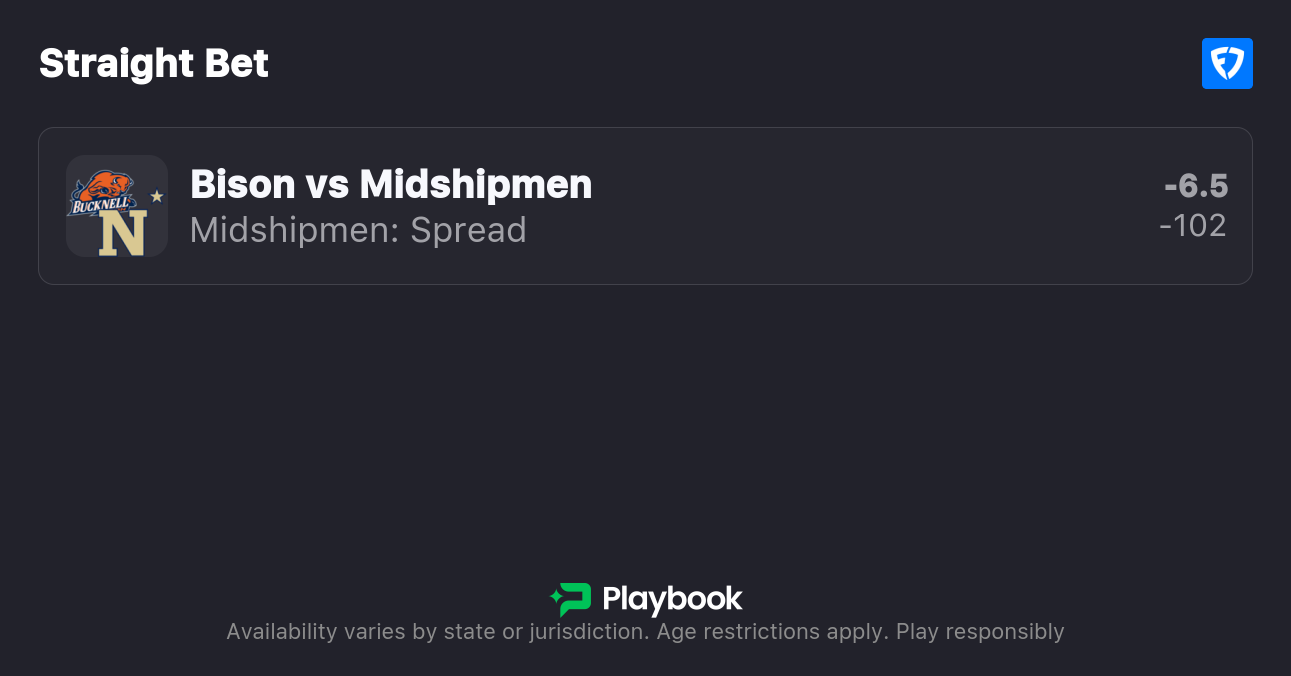 - Navy vs Bucknell moneyline: Navy -315, Bucknell +250