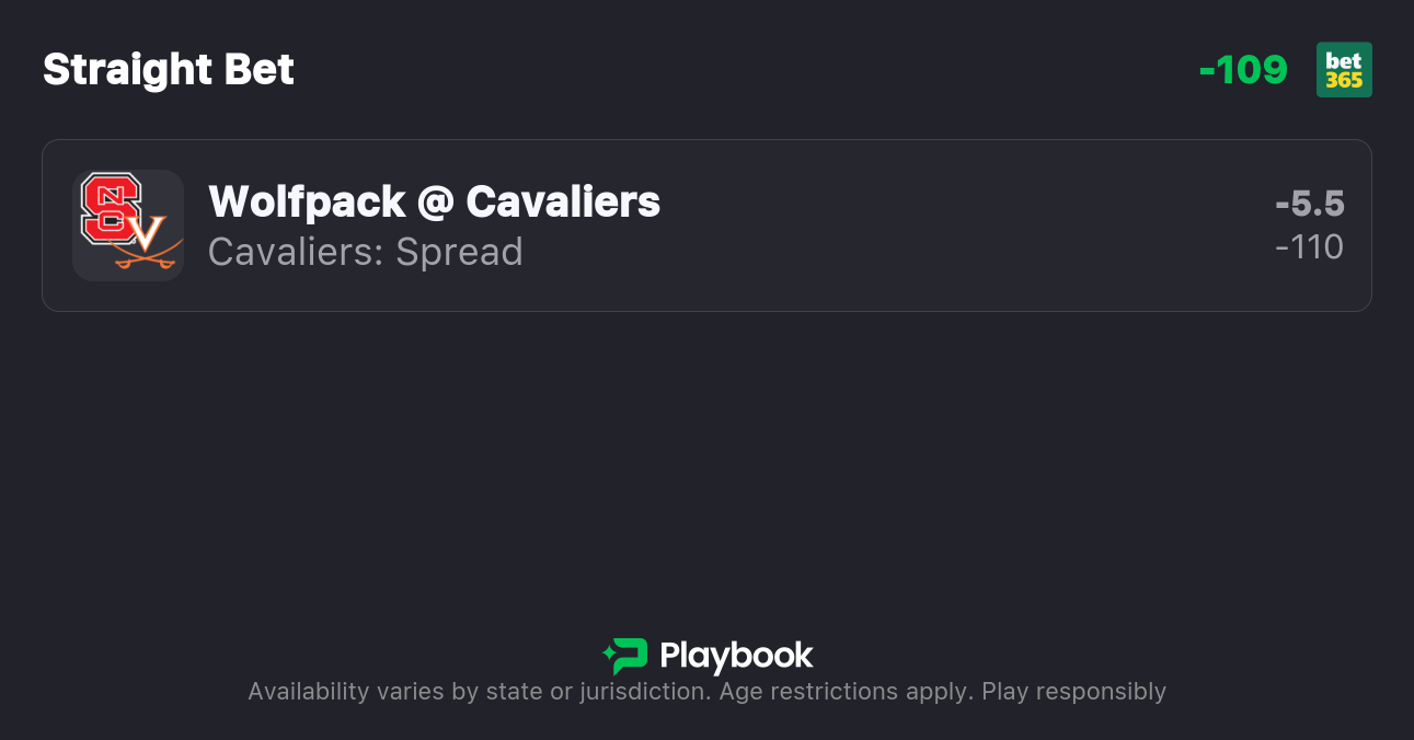 My NC State vs Virginia best bet is on the Cavaliers against the spread. For all of your college basketball bets, be sure to find the best lines by using our live NCAAB odds page.