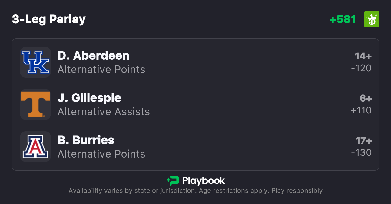 They will need both today to get past Iowa State, but I will be backing Aberdeen. Two other guards I am eyeing today are Ja'Kobi Gillespie and Brayden Burries.