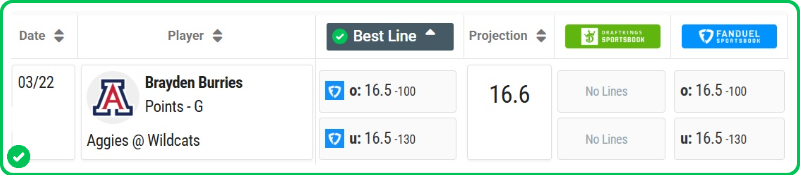 - Brayden Burries Over 16.5 Points (-115, Fanatics)