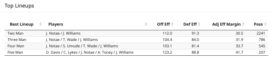 Per Evan Miya, the Razorbacks must have Notae and Williams on the floor at all times against any opponent.