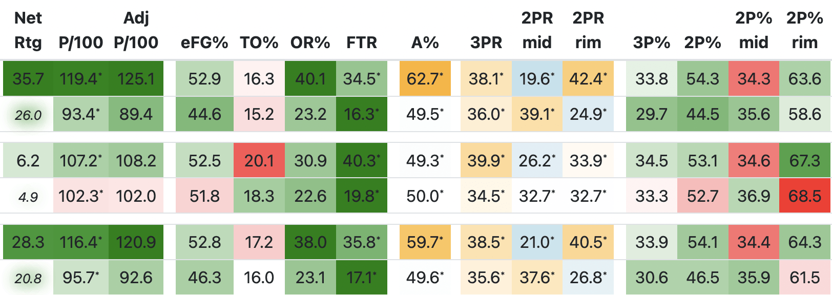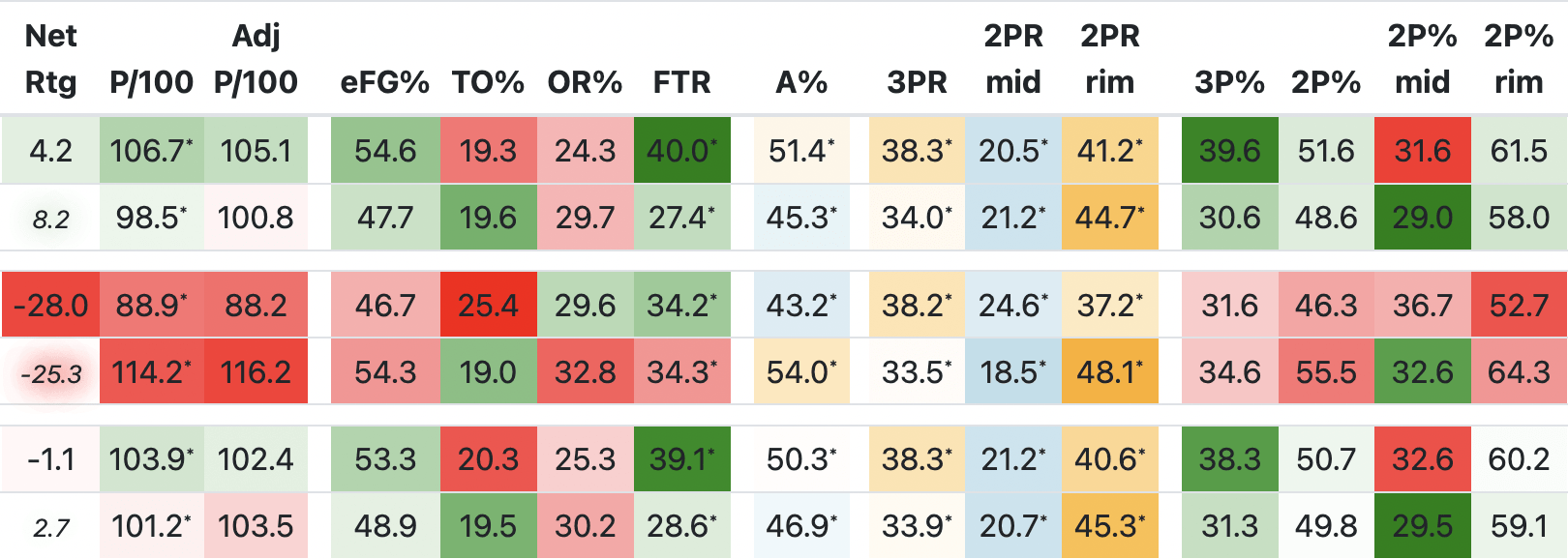 What makes Edey such an important player from a handicapping perspective is what he does for his teammates. Purdue has an all-freshmen backcourt, is sub-225 in minutes continuity and is sub-280 in average experience.