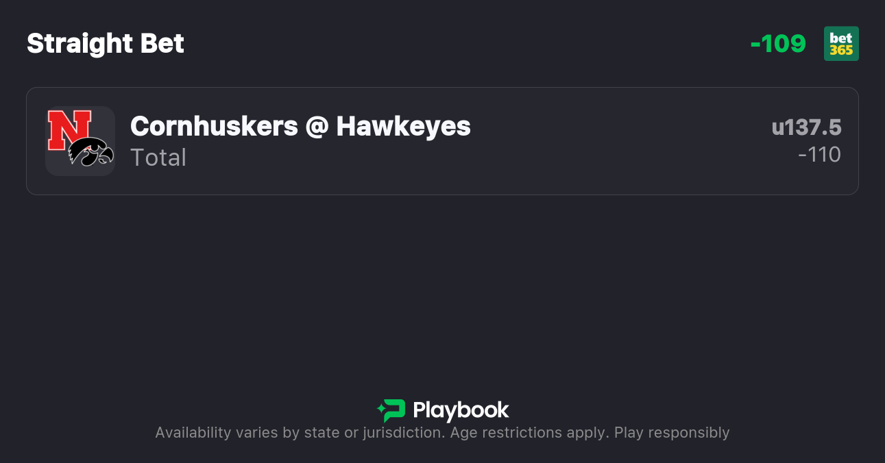 - Nebraska vs Iowa over/under: 137.5 points