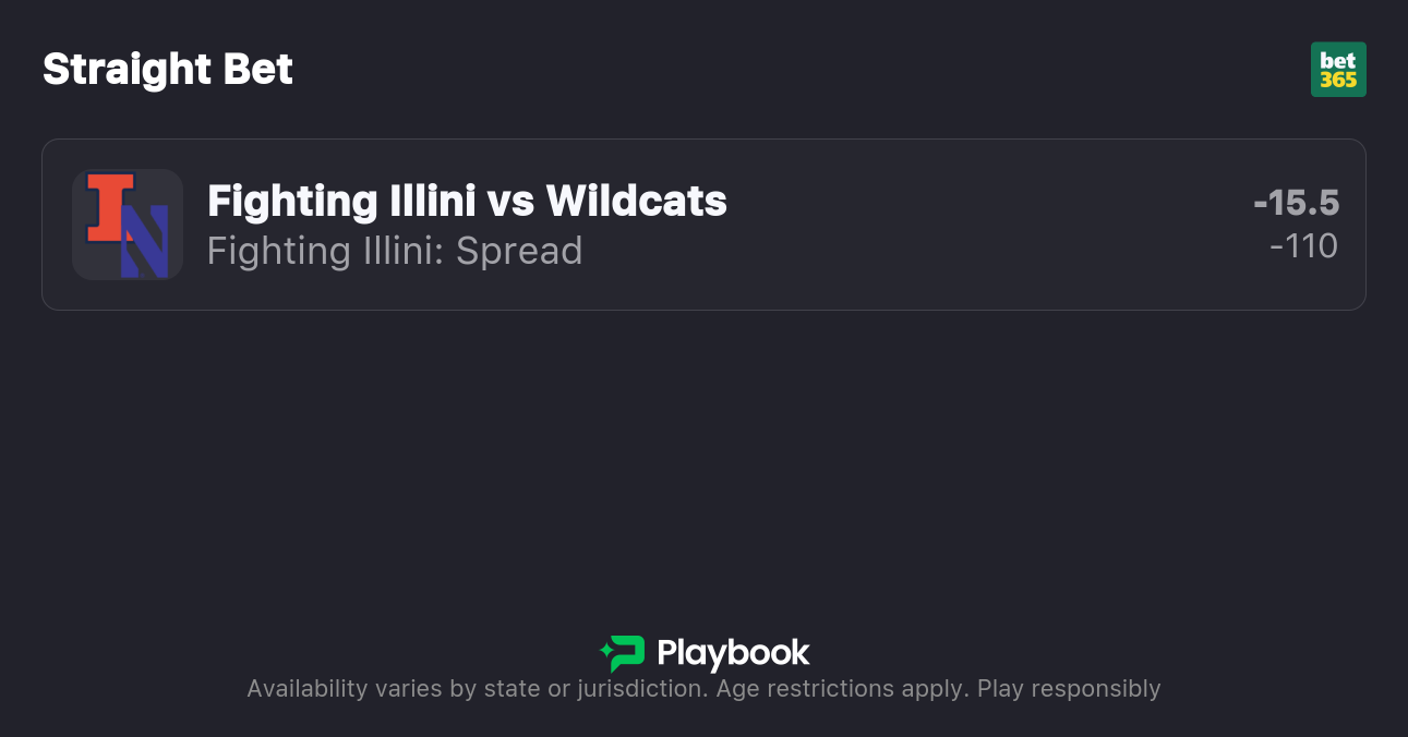 Illinois is favored by 15.5 points on the spread with a moneyline of -2200. The total is set at 151 points.