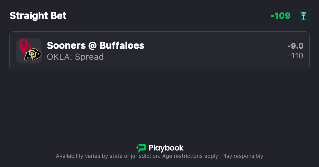 - Oklahoma vs Colorado spread: Oklahoma -9