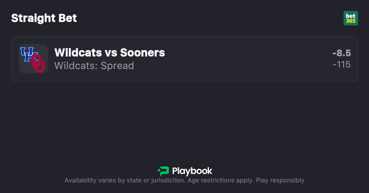 - Oklahoma vs Kentucky moneyline: Oklahoma +375, Kentucky -500