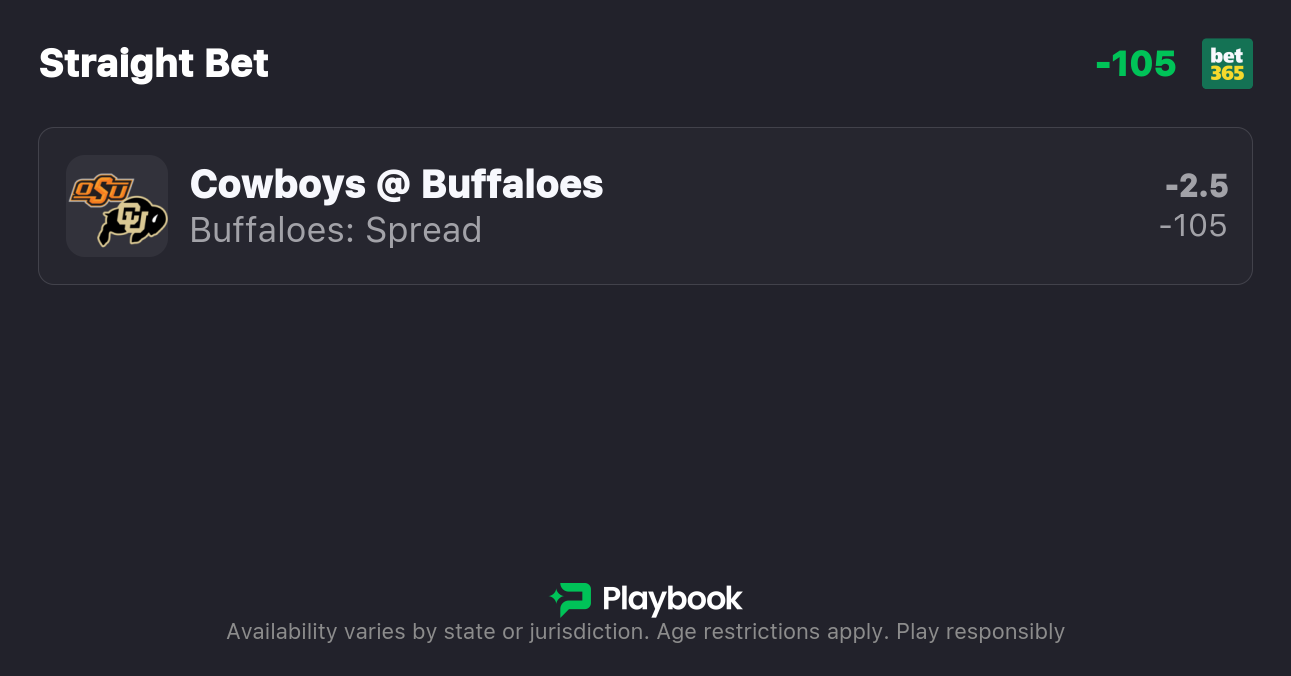 - Oklahoma State vs Colorado spread: Colorado -2.5