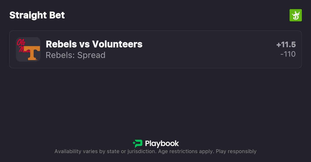 - Ole Miss vs Tennessee spread: Tennessee -11.5