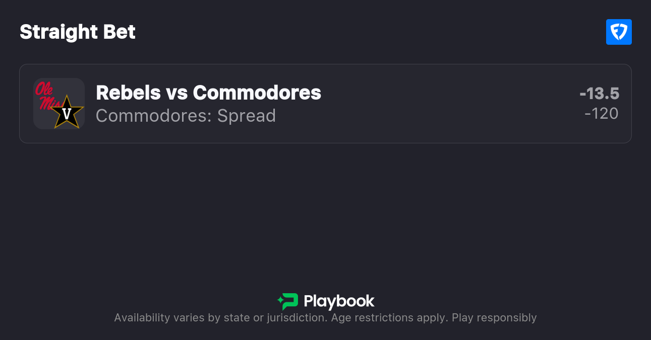 - Ole Miss vs Vanderbilt spread: Vanderbilt -13.5