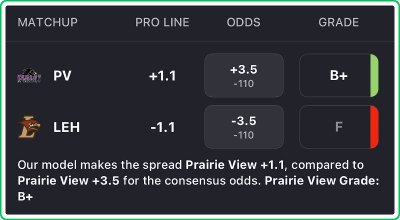- Prairie View A&M vs Lehigh spread: Lehigh -3.5