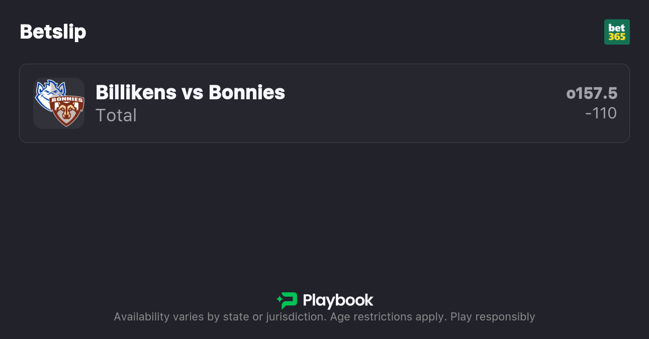 - Saint Louis vs St. Bonaventure over/under: 157.5 points