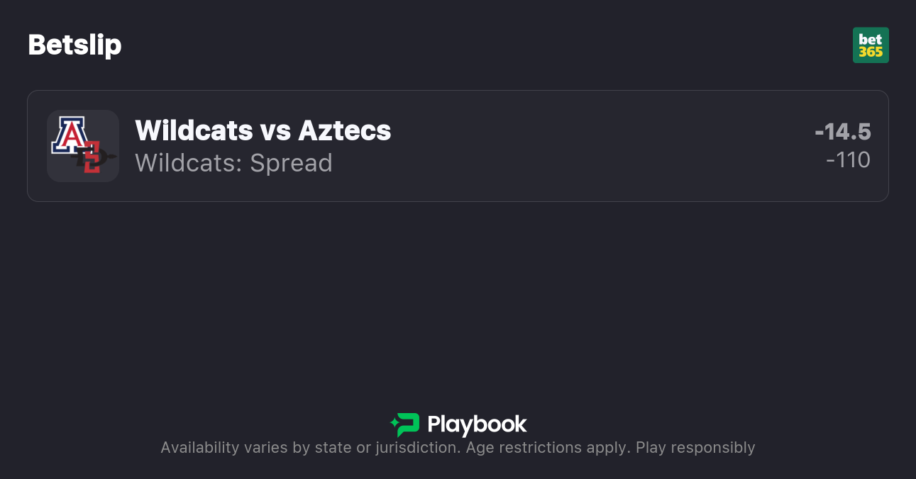 - San Diego State vs Arizona spread: Arizona -14.5