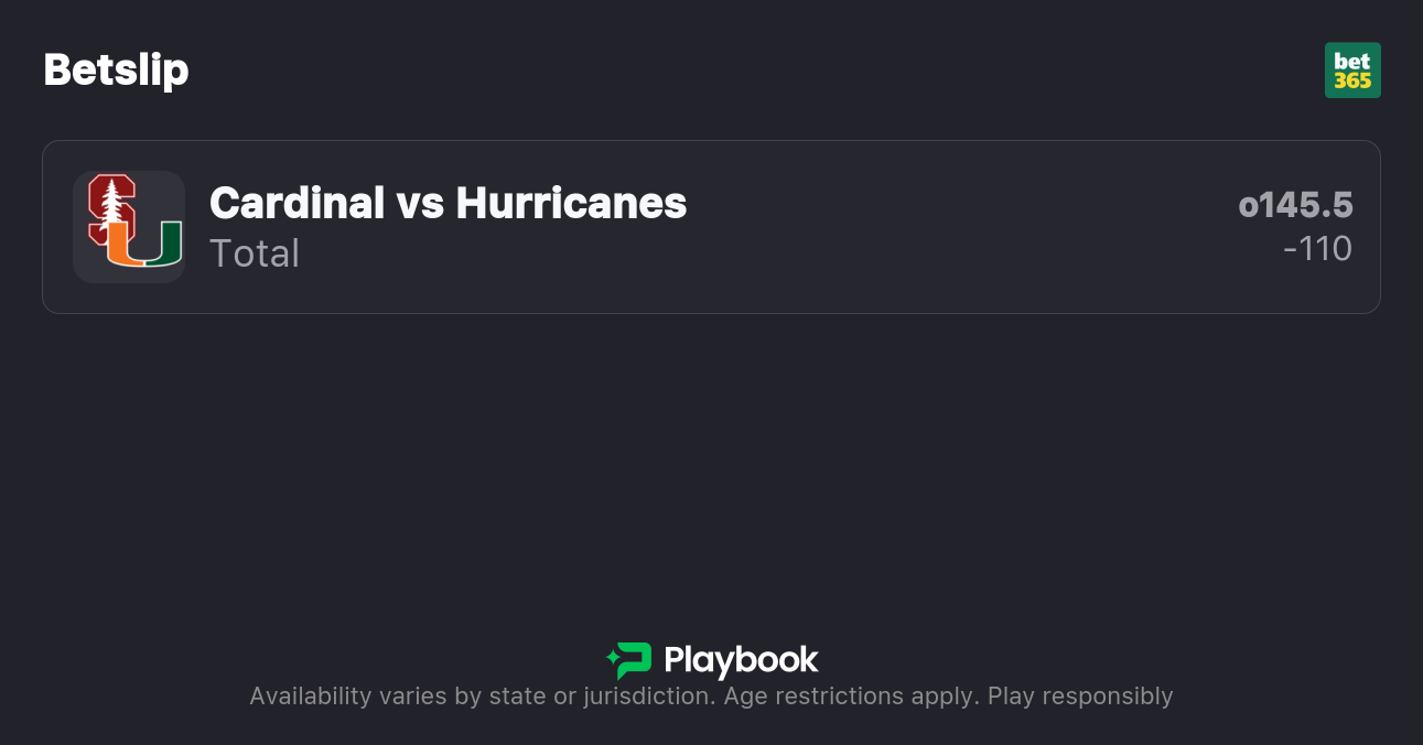 - Stanford vs Miami moneyline: Stanford +350, Miami -450