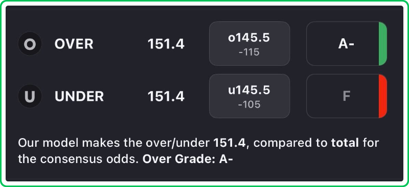 Also, our Action PRO projections have this total up near 151.5, which gives us nearly six points of value at the current line (as of writing). This is marked as a high grade of A-, making me like this bet even more.