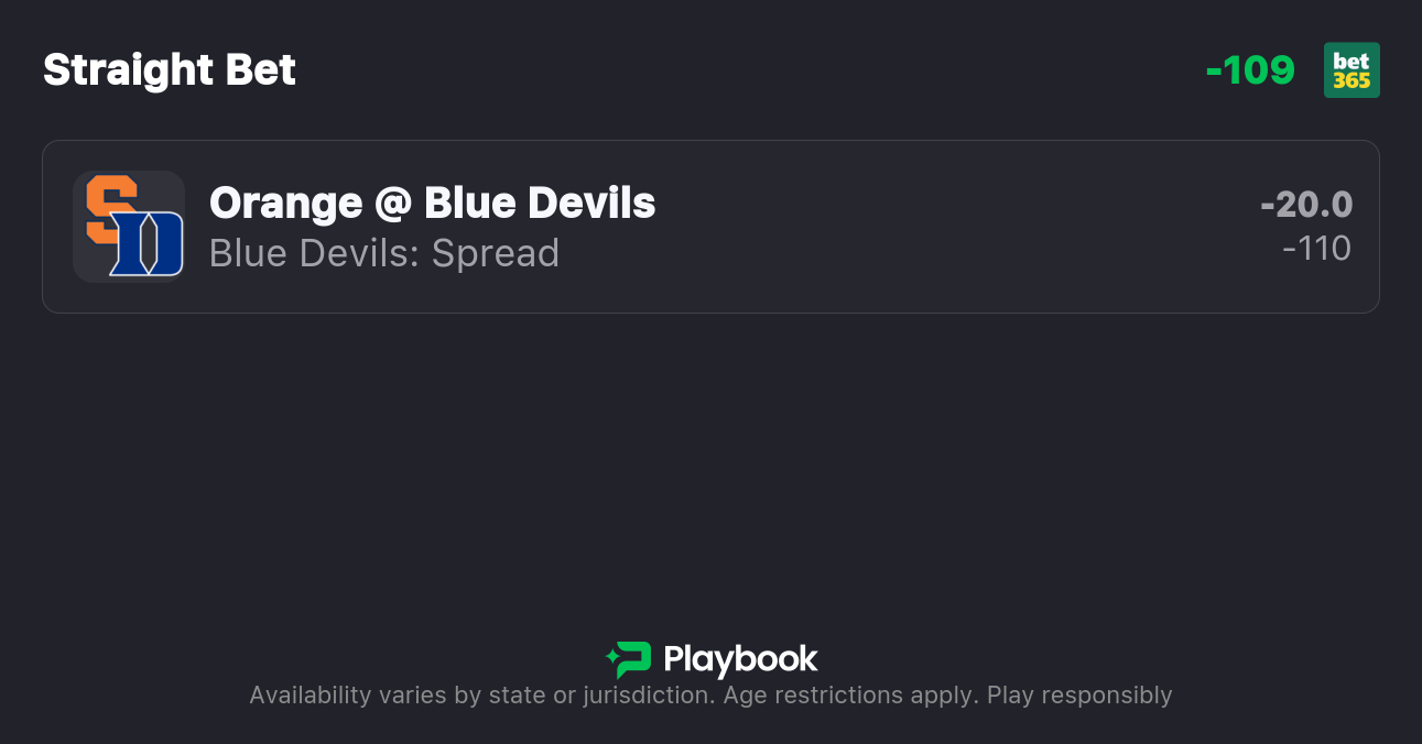 - Syracuse vs Duke spread: Duke -20