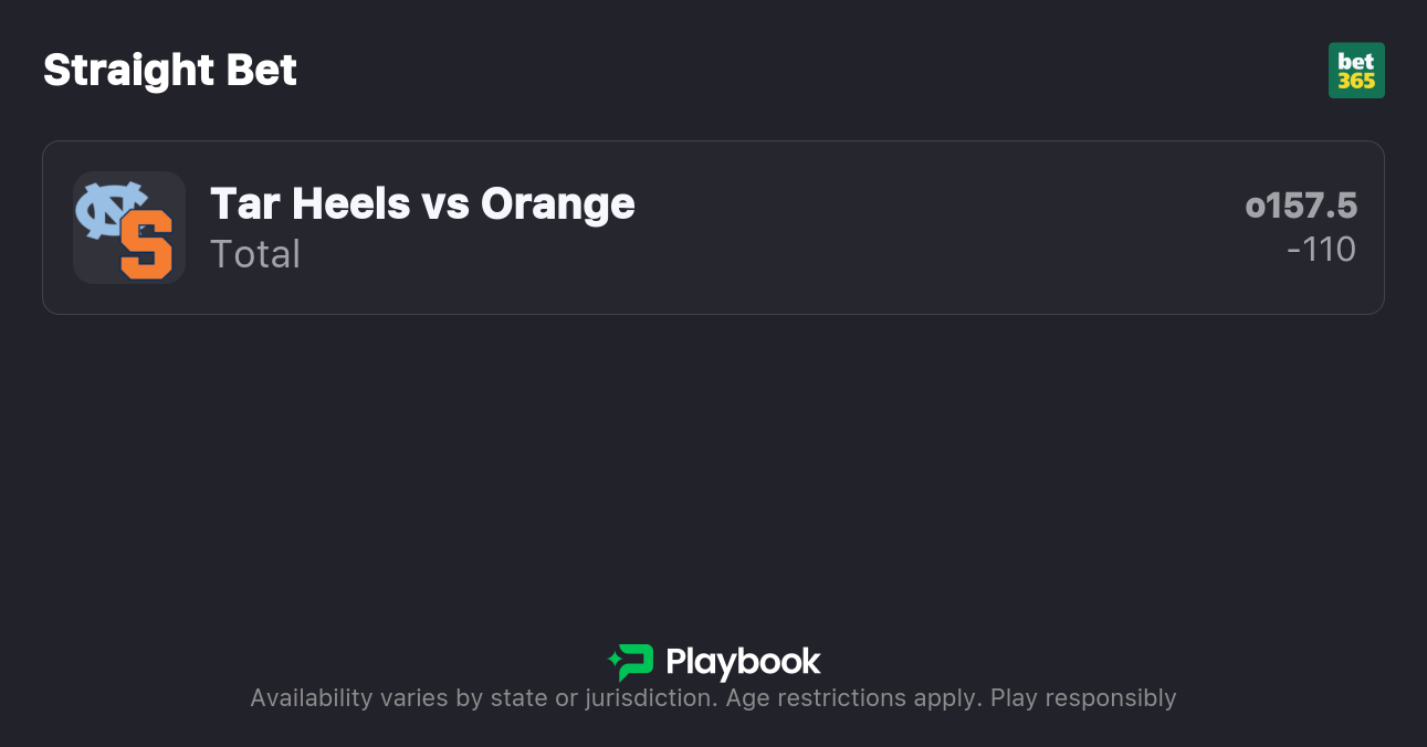 - Syracuse vs UNC over/under: 157.5 points