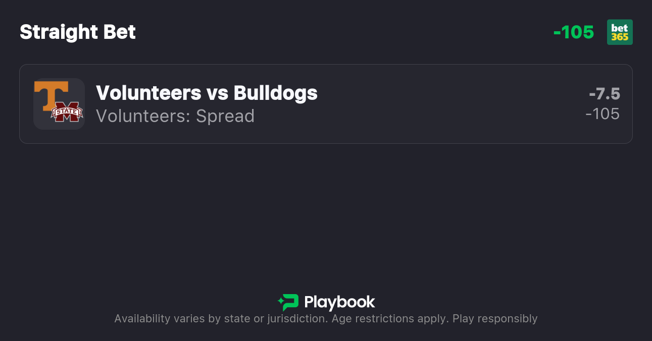 - Tennessee vs Mississippi State spread: Tennessee -7.5