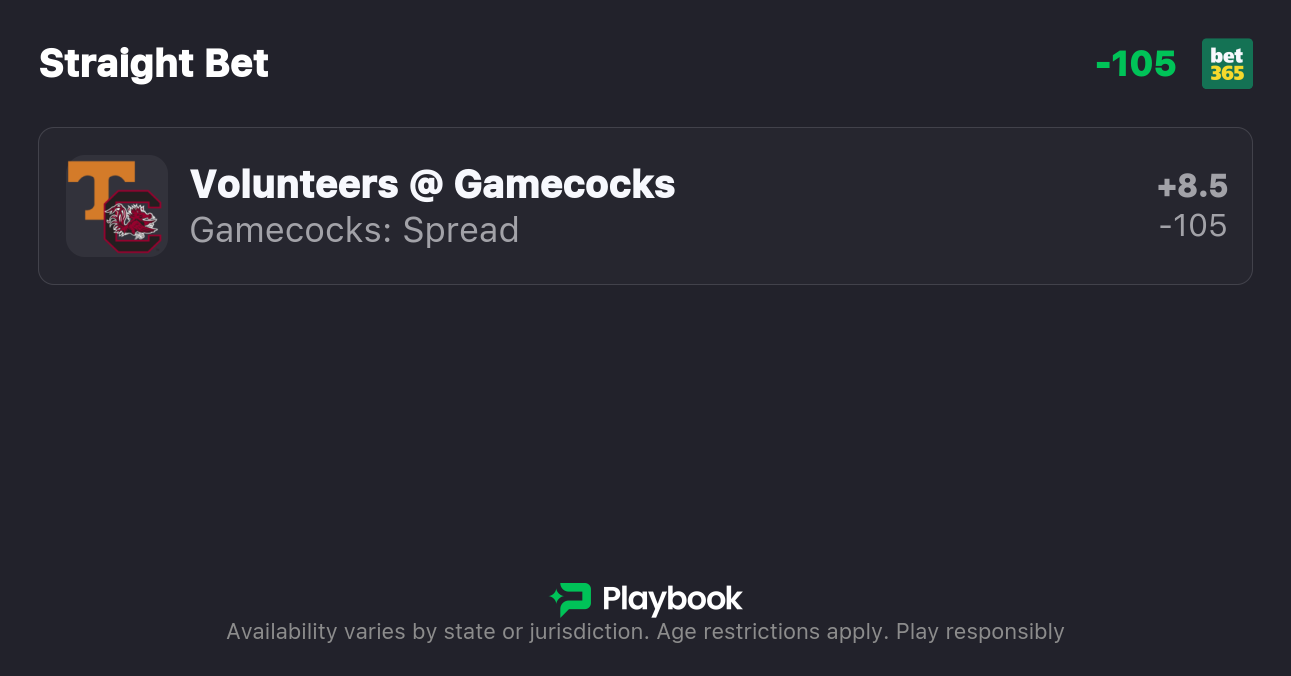 - Tennessee vs South Carolina Spread: Tennessee -9.5, South Carolina +9.5