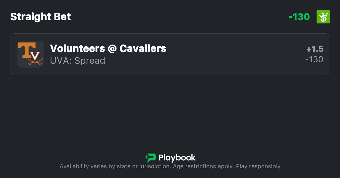 - Tennessee vs Virginia spread: Tennessee -1.5