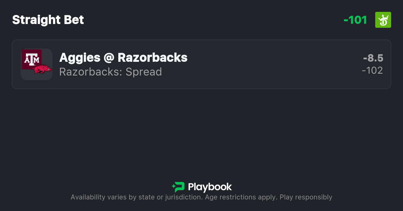 - Texas A&M vs Arkansas Spread: Arkansas -7.5