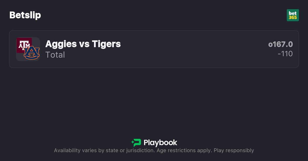 I expect a lot of points. Auburn has one of the most efficient offenses in the country and has scored over 100 in back-to-back games. Meanwhile, Texas A&M has scored over 100 points six times this season.