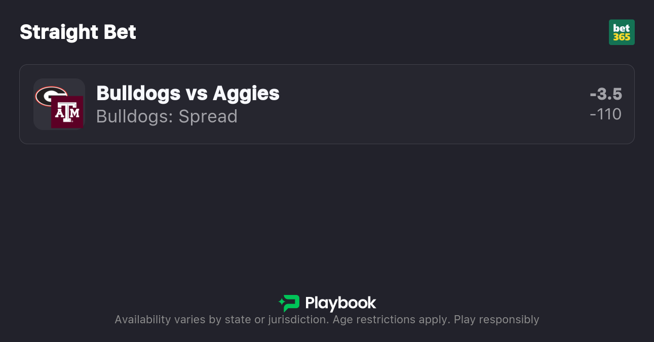 - Texas A&M vs Georgia spread: Georgia -3.5