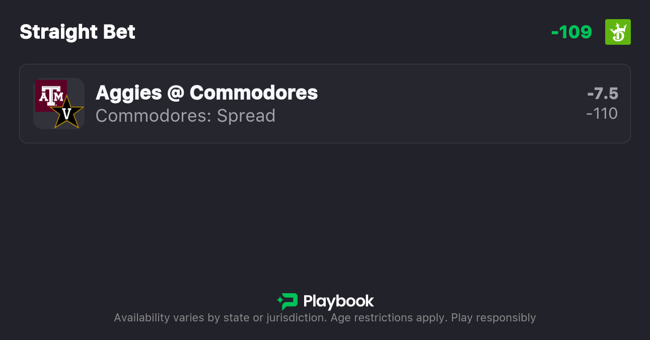 - Texas A&M vs Vanderbilt spread: Vanderbilt -7.5