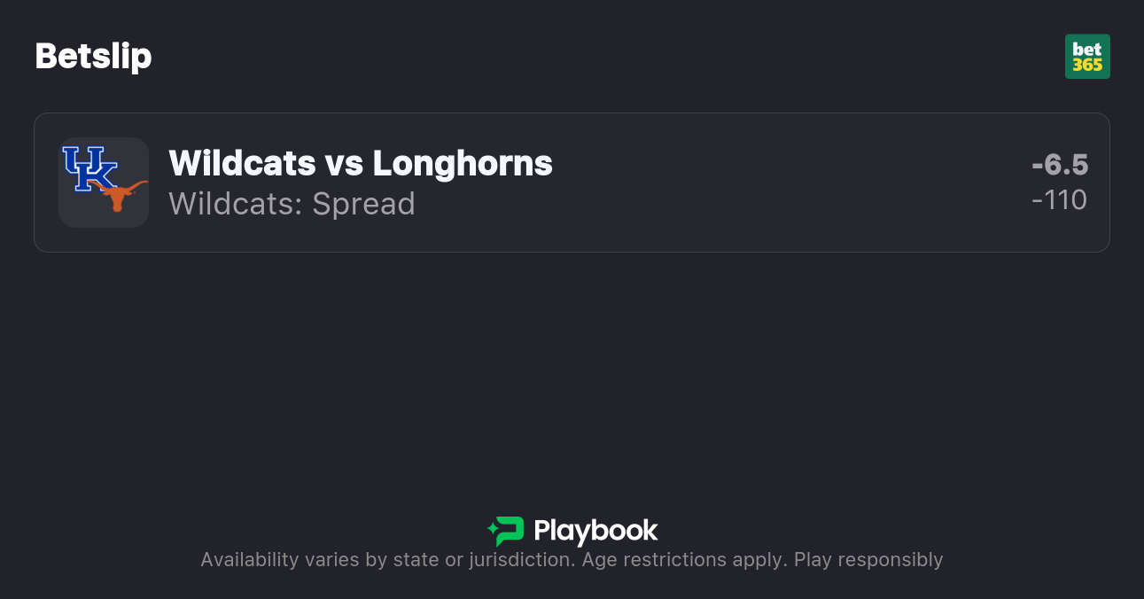 - Texas vs Kentucky spread: Kentucky -6.5