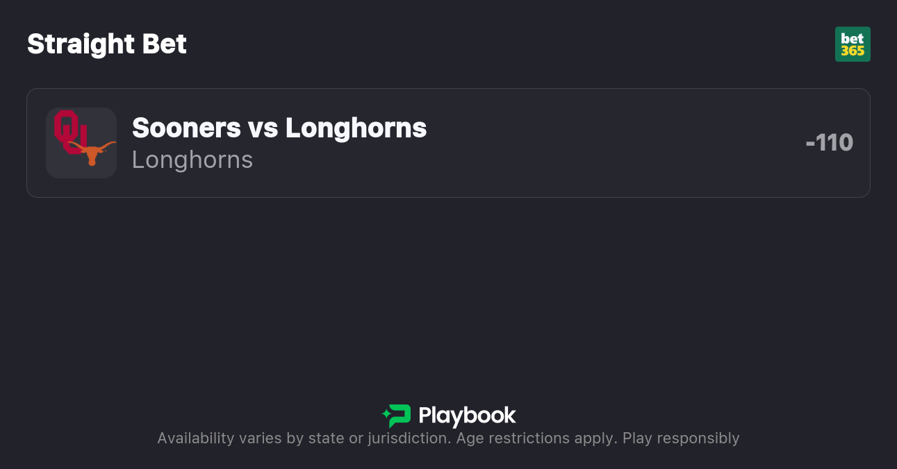 - Texas vs Oklahoma spread: Oklahoma -1
