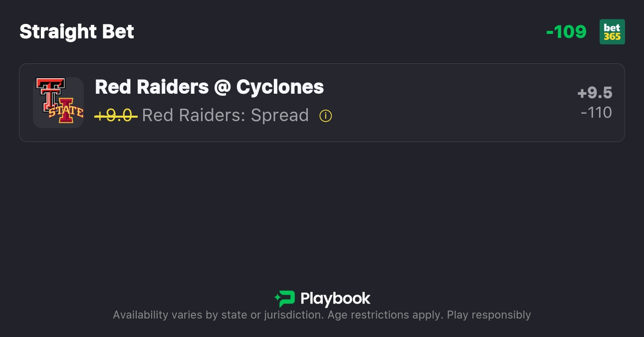 • Texas Tech vs Iowa State Spread: Texas Tech +9.5, Iowa State -9.5