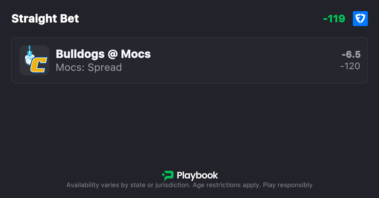 - The Citadel vs Chattanooga spread: Chattanooga -6.5