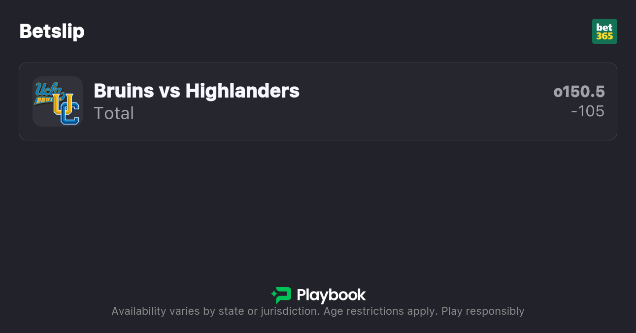 This makes the total I’m seeing look quite low (especially at Caesars, which sits at 148.5 at the time of writing). Riverside is outside the top 300 in defensive efficiency. BYU scored 100 against the Highlanders, and I think UCLA easily gets to 90-plus here.