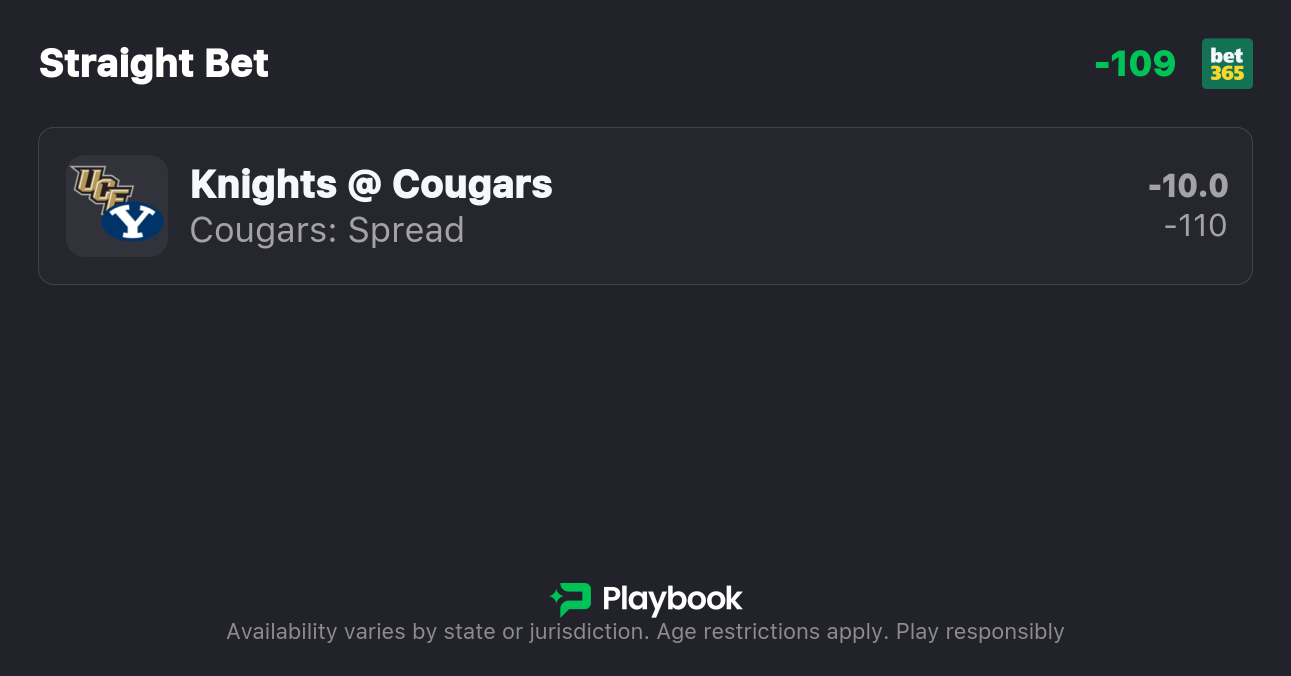 - UCF vs BYU spread: BYU -10
