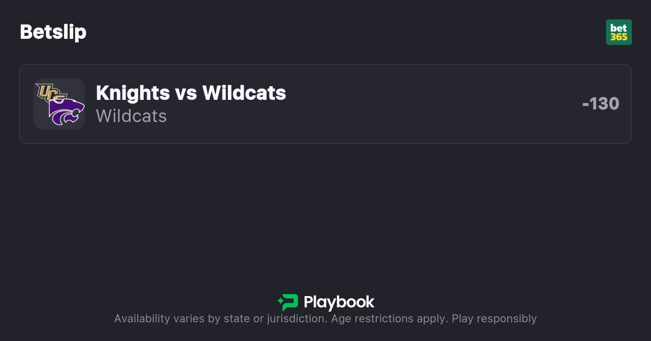 - UCF vs Kansas State moneyline: UCF +110, Kansas State -130