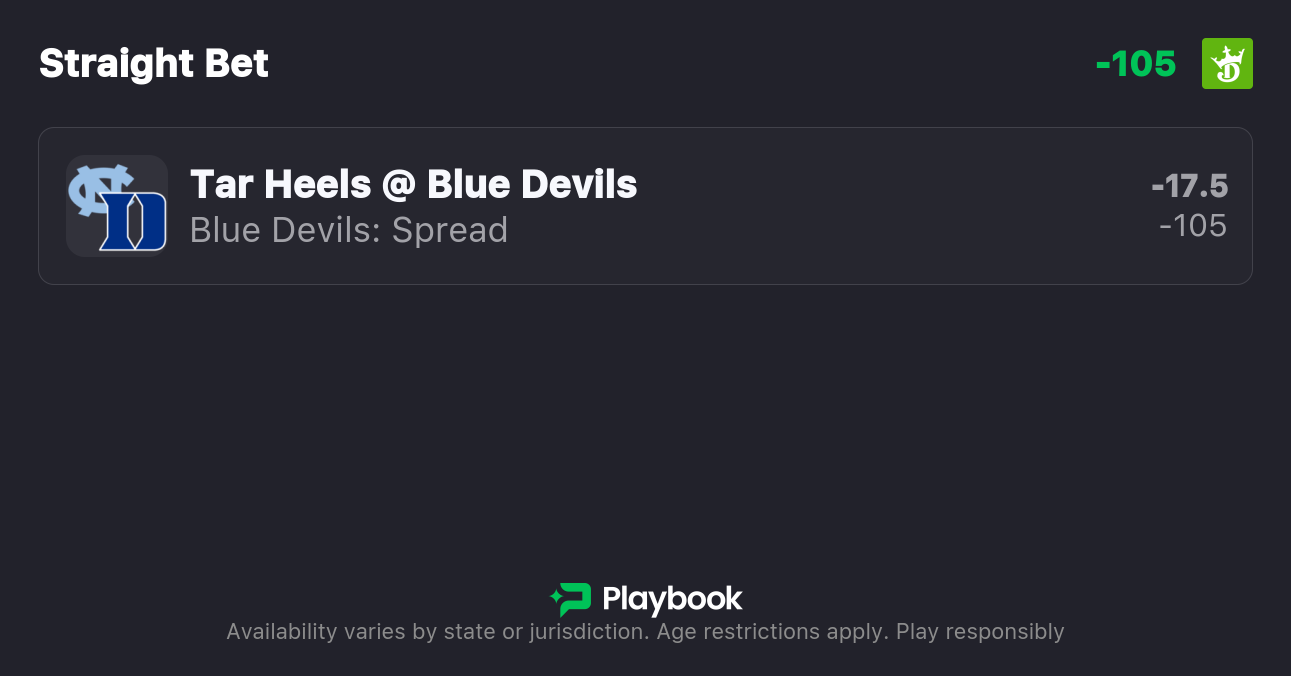 - UNC vs Duke spread: Duke -17.5