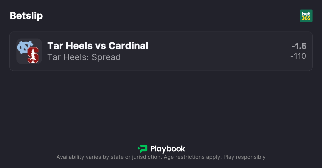 - UNC vs Stanford moneyline: UNC -140, Stanford +120