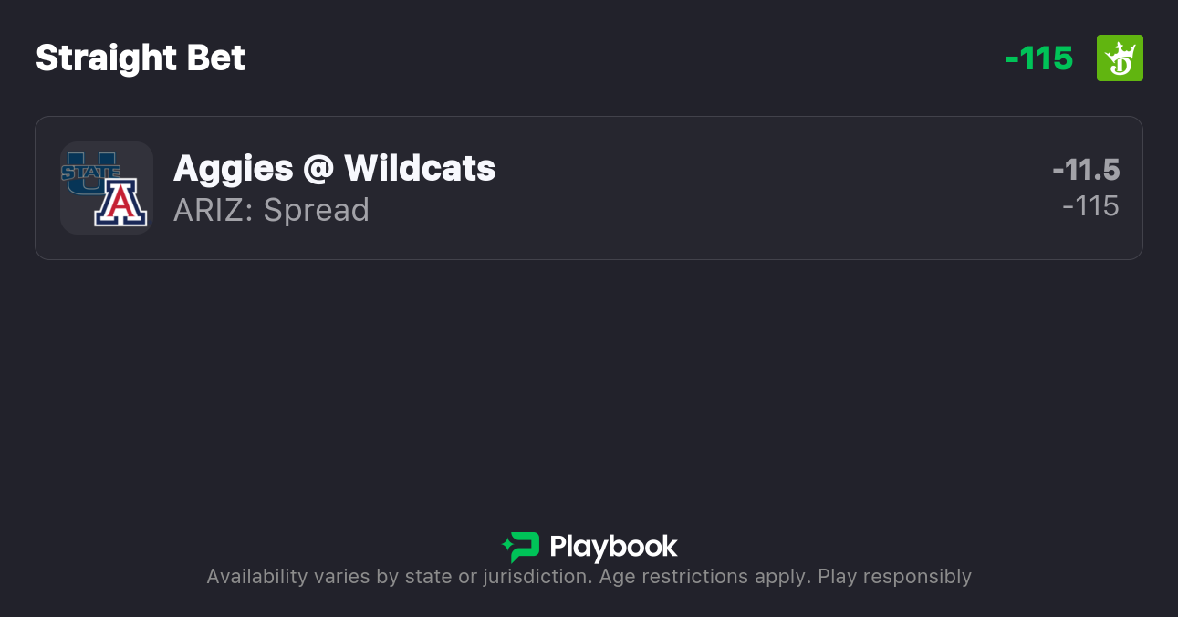 - Utah State vs Arizona spread: Arizona -11.5